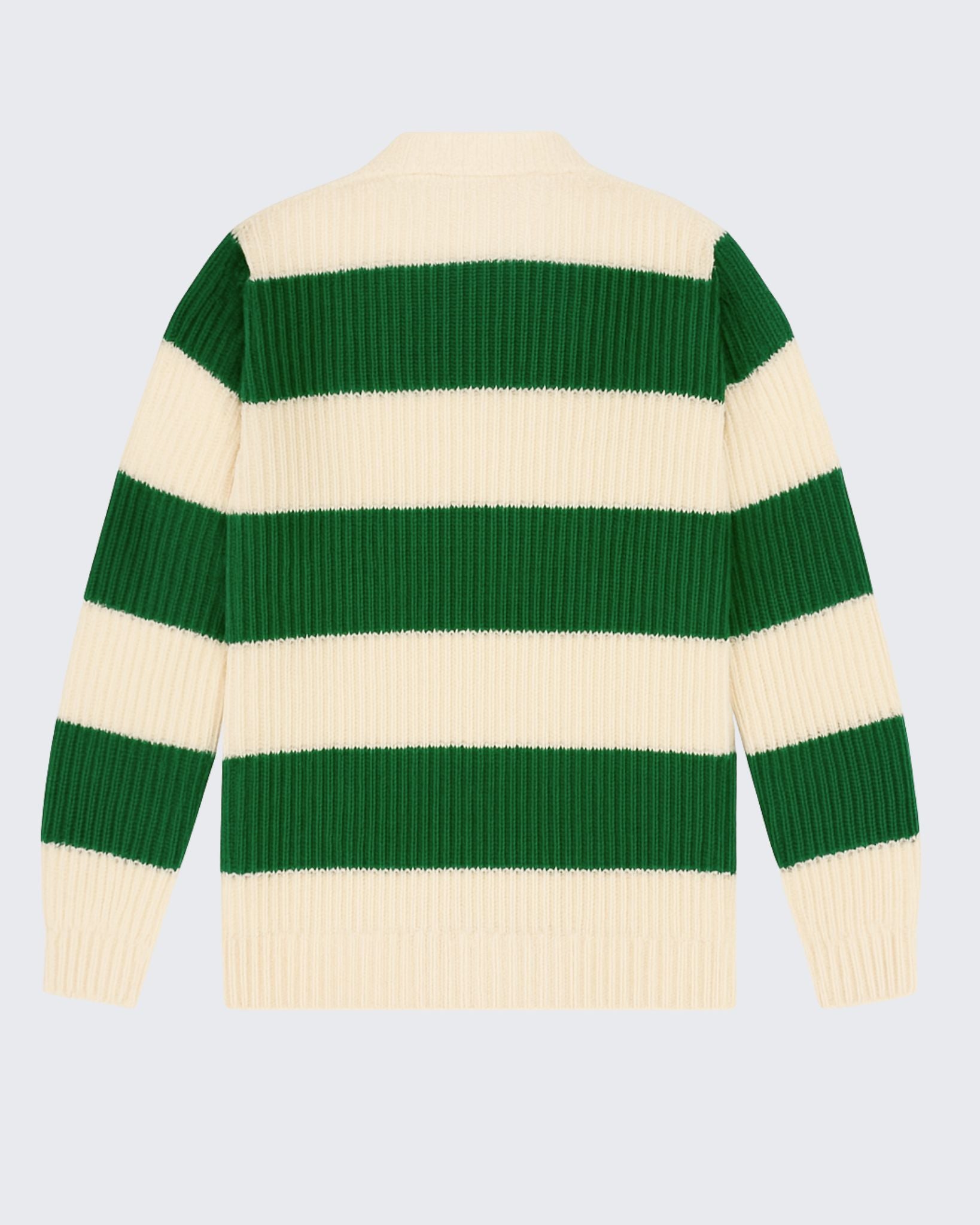 The Lando Knit combines timeless rugby-inspired stripes with a modern edge, making it an essential layer for cooler days. Knitted in heavyweight yarn for warmth and structure, the navy and cream colourway brings a refined yet laid-back aesthetic to your wardrobe.
