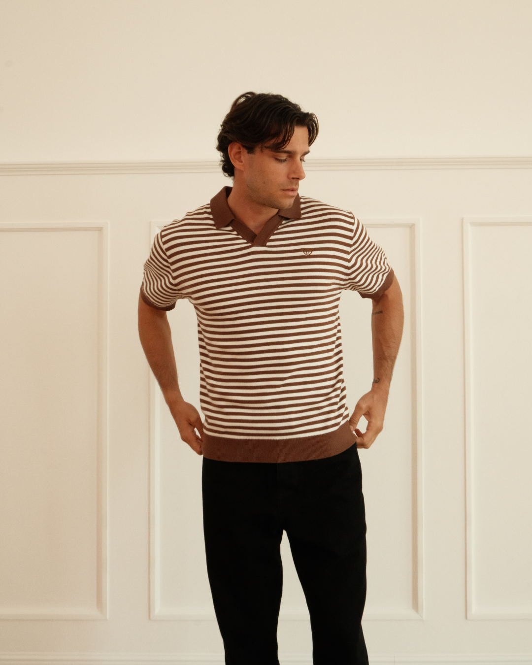 Vintage vibes. Everyday ease. The Mocha & Cream Milton Striped Polo blends retro charm with modern comfort. With earthy tones, contrast trims, and a clean silhouette, it’s built for laid-back days, warm weather, and effortless style.
