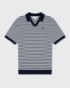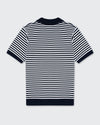 Striking contrast. Everyday cool. The Navy & Cream Milton Striped Polo brings clean lines and bold energy to your casual rotation. With crisp white stripes, a sharp V-neck collar, and subtle chest branding, it’s built for warm days and confident style.